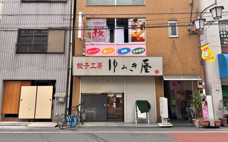 町屋駅前にある「餃子工房 ゆうき屋」が閉店していました。 まずはお店の場所を地図で確認してみましょう。 京成線の町屋駅を出てすぐのところです。線路脇の藍染川通り沿いです。 店舗外観がこちら。 こちらは2月16日に撮影した