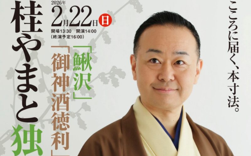 2026年2月22日(日)、ムーブ町屋にて「第116回 桂やまと独演会~「鰍沢」「御神酒徳利」ほか一席~」が開催されます。 先祖代々荒川区の尾久在住という桂やまと師匠。今回が116回目の独演会です。 演目はこちら。 ・鰍