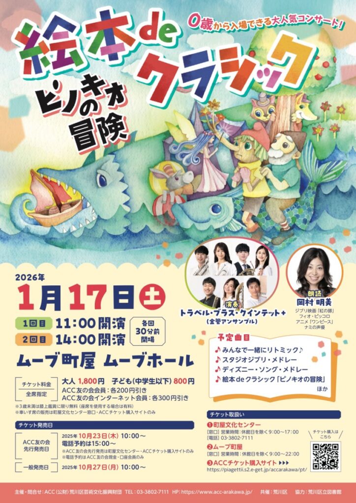 2026年1月17日(土)、ムーブ町屋にて「絵本deクラシック ~ピノキオの冒険~」が上演されます。