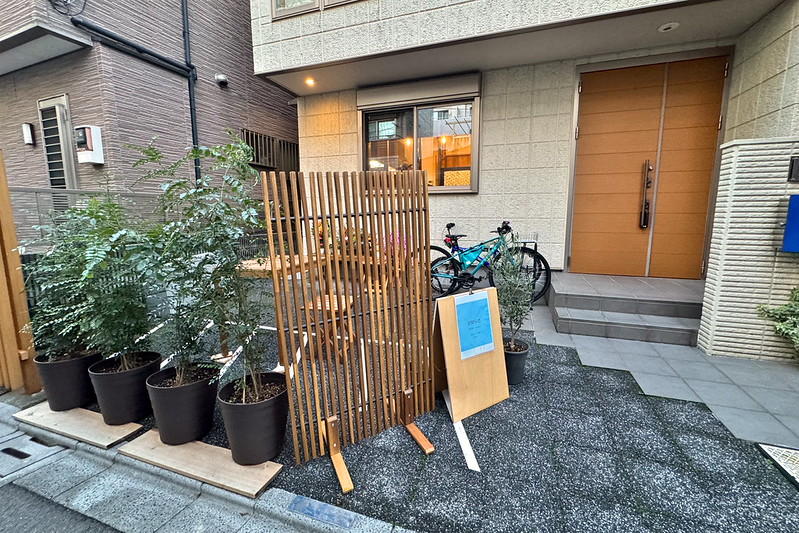 この民家の1階部分が店舗で、駐輪スペースにも座席を設けているようです。