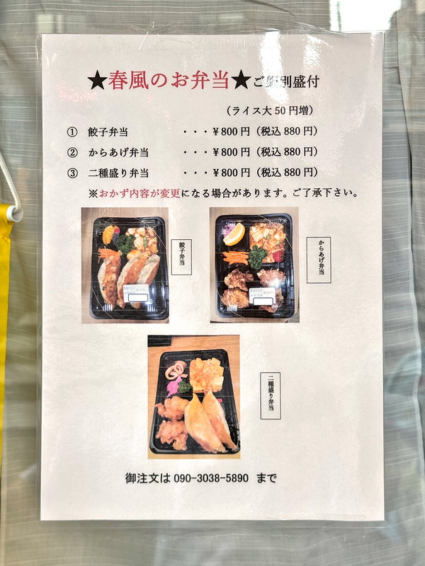 テイクアウトのお弁当のメニューも掲示されていました。