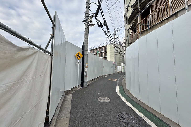 対象エリアとなっている尾竹橋通り沿いの建物のほとんどがフェンスで囲まれていました。