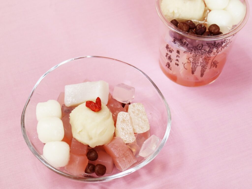 ・苺ミルク白玉あんみつ