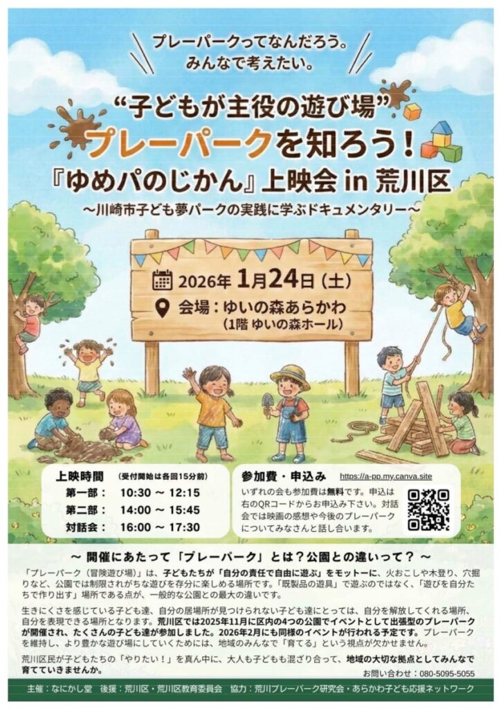 2026年1月24日(土)、ゆいの森あらかわにて「ゆめパのじかん」の無料上映会が開催されます。