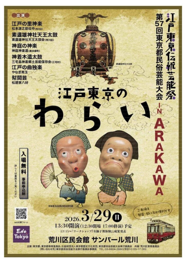 2026年3月29日(日)、サンパール荒川にて「第57回 東京都民俗芸能大会 IN ARAKAWA」が開催されます。