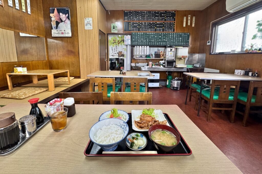 昭和の雰囲気の中で食べる定食