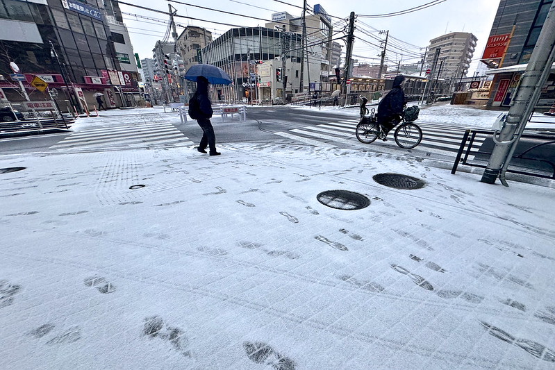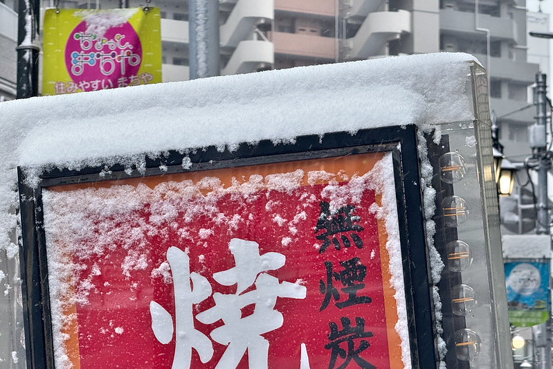 2026年2月8日(日)、朝目覚めて窓の外を見てみたら、東京都荒川区でもみごとに雪が積もっていました。朝食を食べに町屋駅前に行ってみると、いつもの見慣れた景色が全く異なるものになっていたのでレポートします。