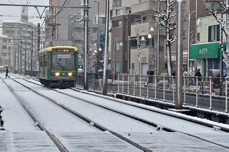 荒川区内で雪景色を見たいならば都電荒川線を欠かすことはできないでしょう。