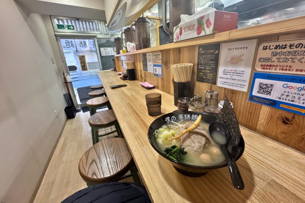 店内には6席のカウンター席がありました。そんなに座席数は多くはありません。この日は11時の開店直後に入ったので全く並ぶことはありませんでしたが、先日の土曜日のお昼時にお店の前を通った時には行列ができている時間帯もありました。