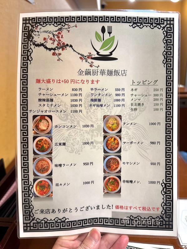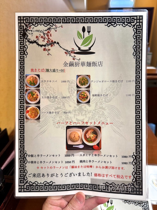 金繭厨華麺飯店のメニュー