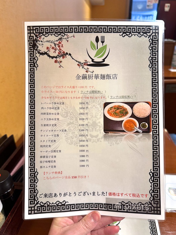 全時間帯で注文可能でした。ランチタイムは全品150円引きです。その他の時間帯で小ライス(-50円)や少なめサイズ(-100円)もあるとのことです。