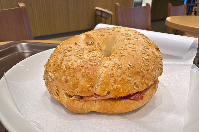 次はベーコンエッグチーズベーグルサンド。