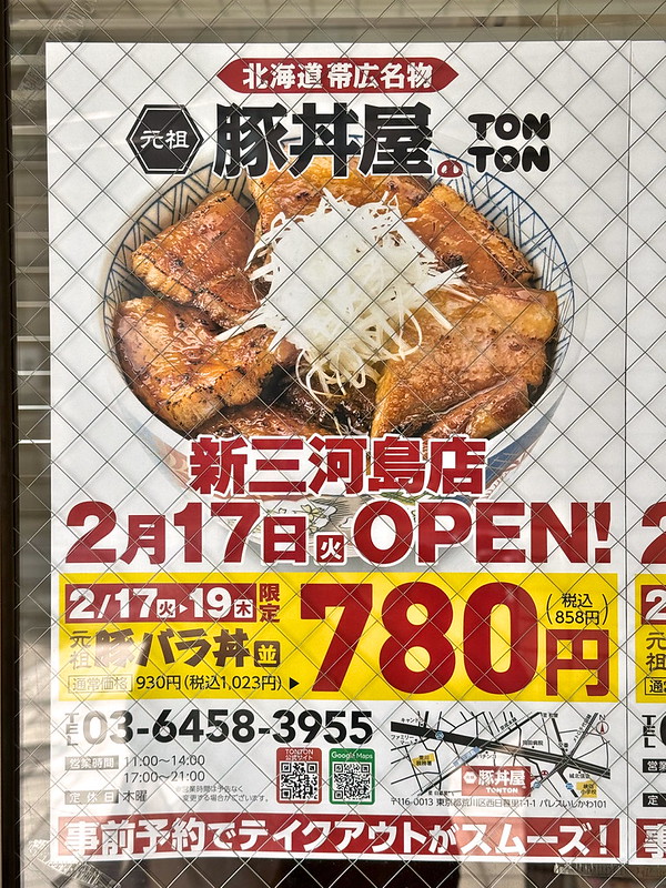 先日、「元祖豚丼屋TONTON 新三河島店」が近日中にオープンする旨をお伝えしました。