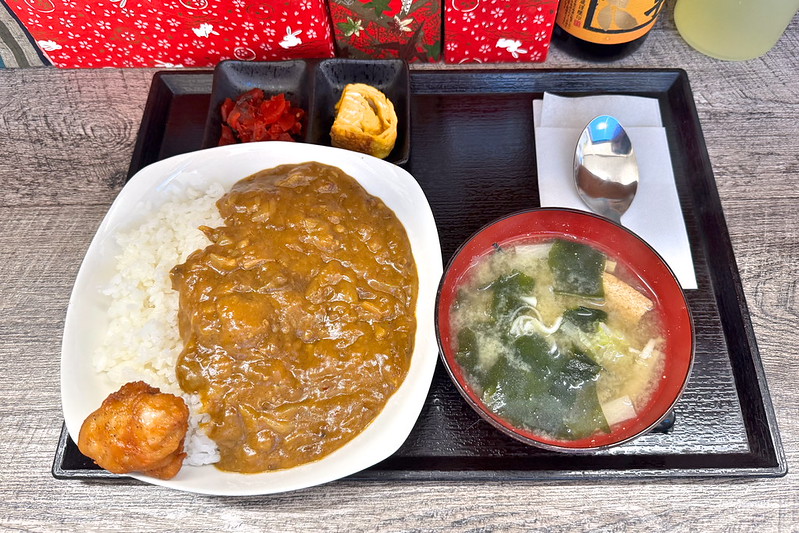 唐揚げが添えられていますが、これはサービスでした。おそらく雪が降り始めた寒い日だったからだと思います。それではいただきます。