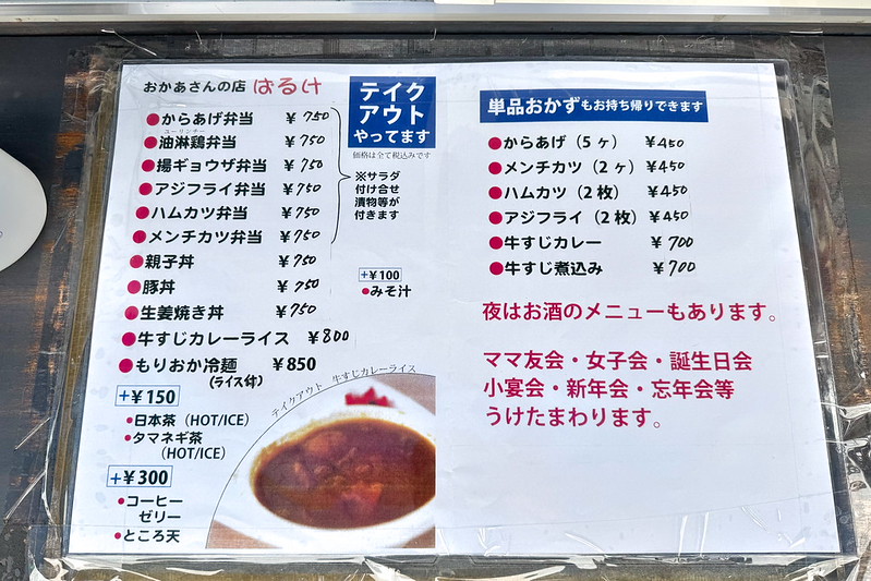 交差点の角にあります。青いテント看板が目印です。のれんなどには「お母さんの店」とも出ています。