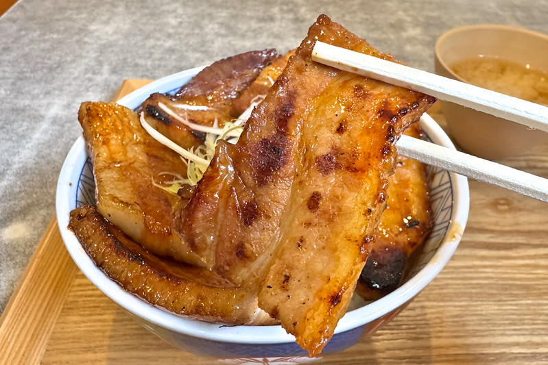 豚丼は北海道の帯広の名物料理だそうです。しっかり厚みがあるのに無茶苦茶柔らかでした。タレも濃いめで美味しいです。タレは醤油ベースに魚介エキスをブレンドしているとのこと。ネギもアクセントになりますね。ご飯がすごく進みます。ただ、並盛といえども量がすごいあるので、完食したらお腹いっぱいになり過ぎました。ご飯は小盛の150gでよかったかも。でも小盛だとお肉3枚なので物足りなさもあるかなとも思いました。とは言え、厚切りの豚バラ肉の美味しさは素晴らしいので、気になる方はぜひ食べに行ってみてください。