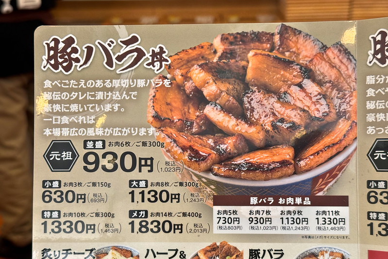 おそらくスタンダートなのはこちらの豚バラ丼だと思います。