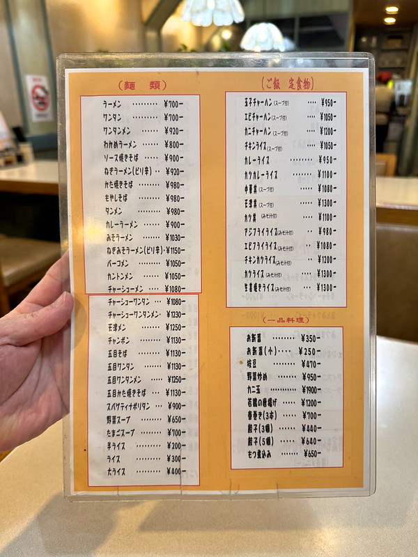 ラーメンが700円、玉子チャーハンが950円です。町中華らしいものもあれば、スパゲティナポリタンなどの喫茶店らしいものもあります。
