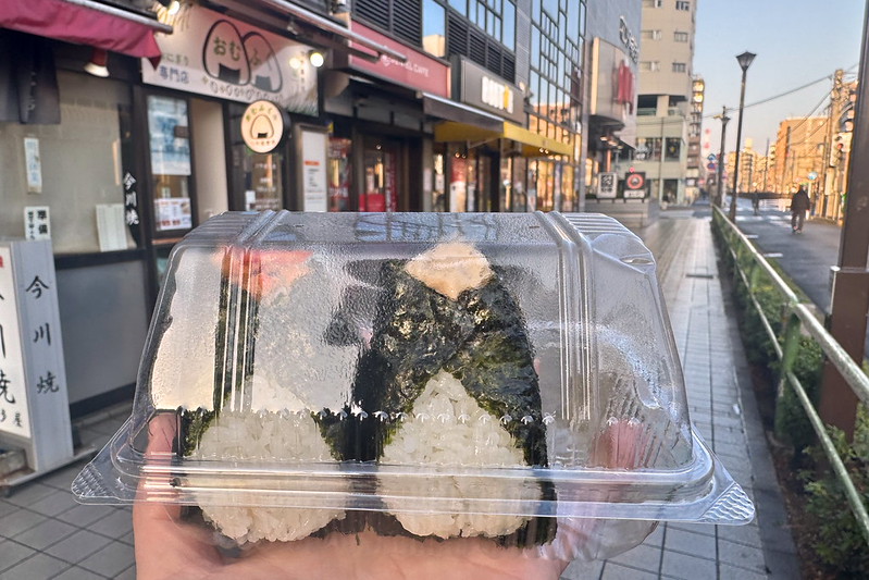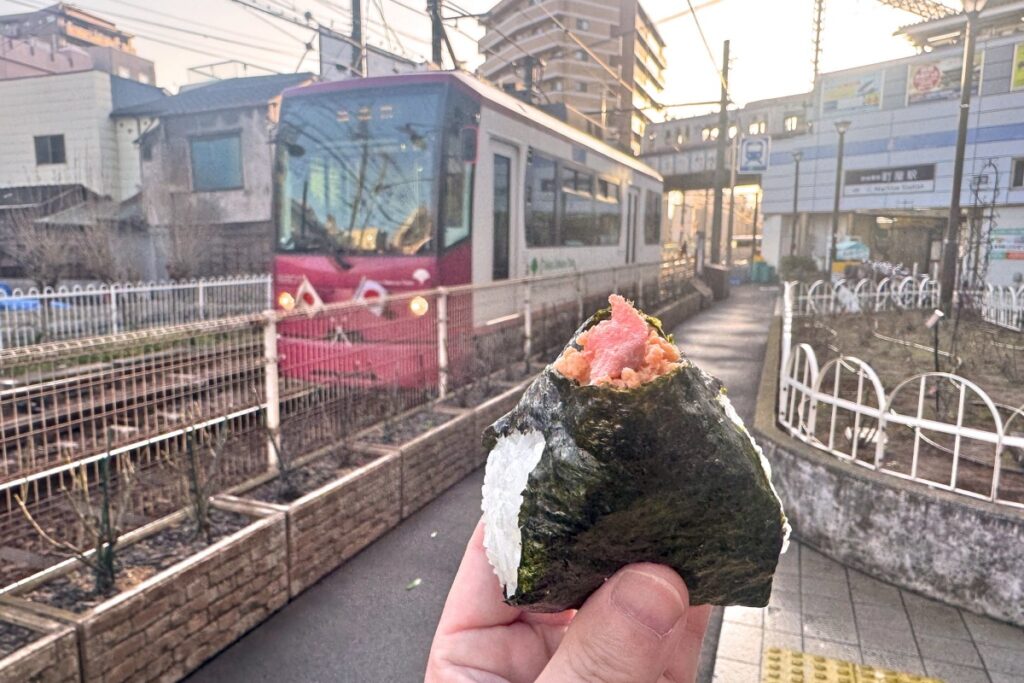 筆者は鉄道好きなのでついおにぎりと都電や京成の写真を撮ってしまいました。なお、ここでは食べずに自宅に持ち帰ってからゆっくり食べました。