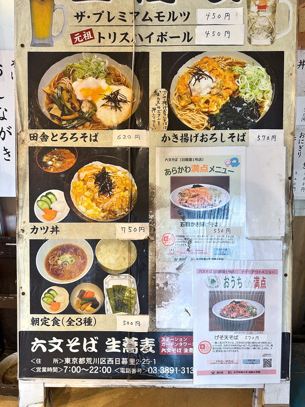 六文そば 日暮里一号店のメニュー