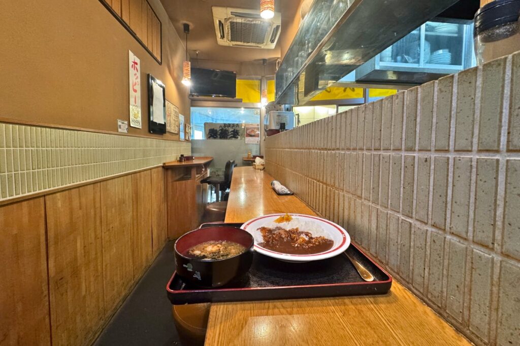 店内にはカウンター席のみでバーにあるような椅子があります。椅子はあるけど立ち食いそばのカテゴリーのお店と言ってもいいでしょうかね。