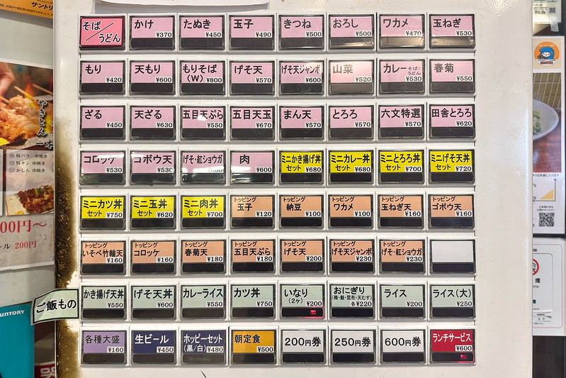 田舎とろろそばが620円、かき揚げおろしそばが570円などです。500円の朝定食もありますね。この裏側に文字情報のみのメニューもあるのですが、看板をずらさなくてはいけなかったので撮影できず。