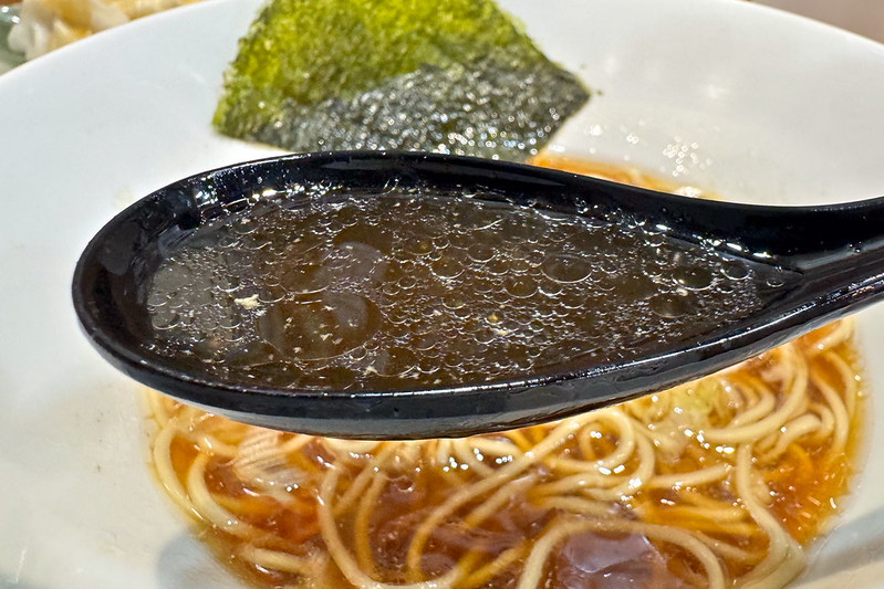 具はネギ、きくらげ、海苔というシンプルな構成です。まずはスープ。