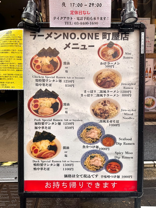 ラーメンNO.ONE 町屋店のメニュー