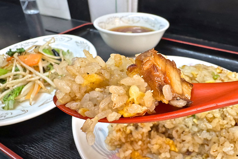 これが柔らかくて無茶苦茶美味しいのです。じっくり煮込まれているとのことで、旨味たっぷりです。最初の一口から大当たりであることを確信しました。これがゴロゴロ入っているのですよ。ご飯はパラパラでいかにも町中華らしいチャーハンでもあります。