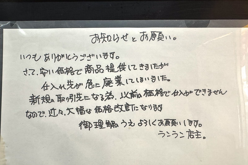 安い仕入先が廃業になってしまったためだそうです。