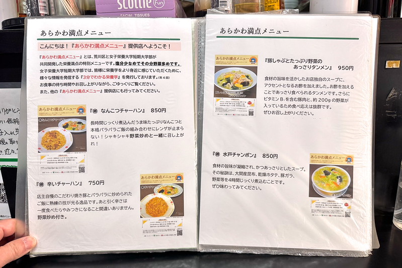 そしてお店、荒川区、女子栄養大学短期大学部による共同開発のあらかわ満点メニュー。