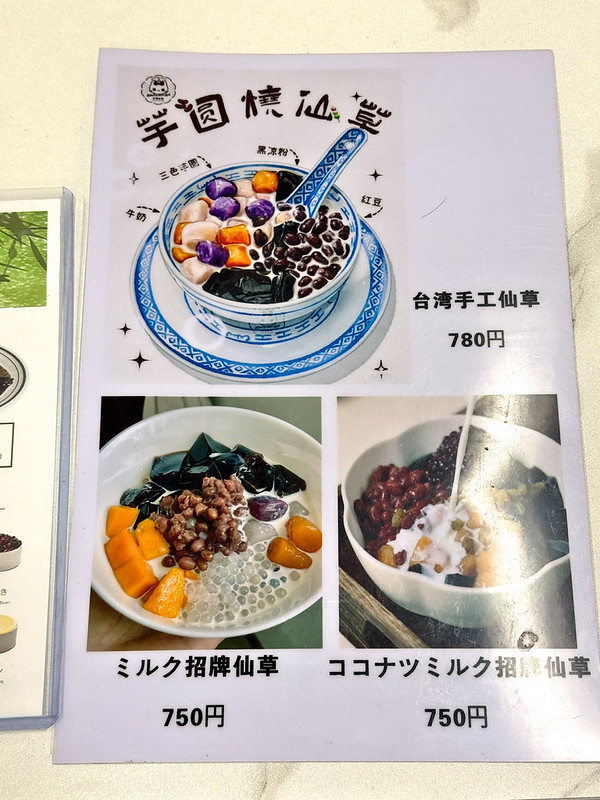 仙草、プリンなどです。